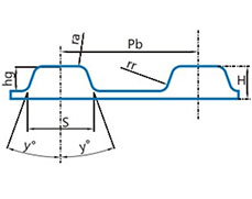 圓弧形同步帶 型號(hào) 節(jié)距 齒形角 齒根厚 齒高 齒根圓角 齒頂圓角 帶厚 齒數(shù)范圍 節(jié)線長(zhǎng)度 查看